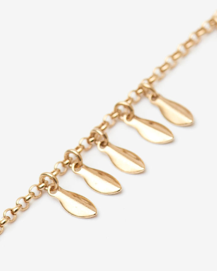 This Metal Shiny Leaf Bracelet by Isabel Marant is a delicate gold-tone bracelet featuring enameled leaf pendants. The adjustable fit makes it perfect for layering or wearing solo, adding a subtle, nature-inspired elegance to your look.