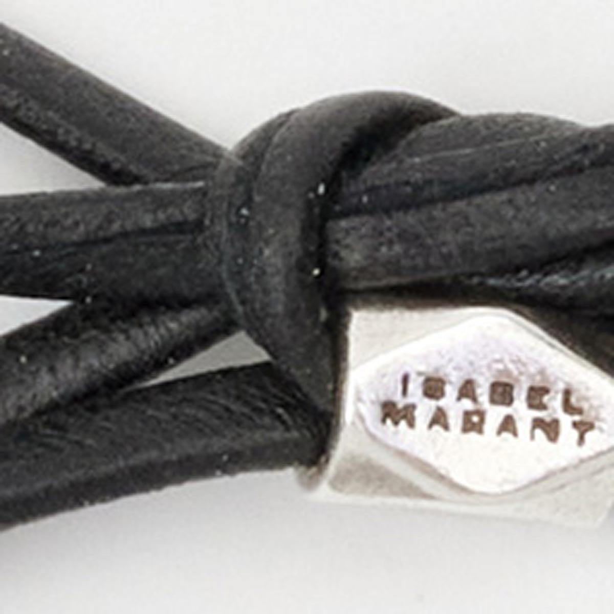 This Oyan Bracelet by Isabel Marant is a striking piece featuring a lambskin leather wrap design and an oversized faceted bead. With silver-finish metal and a hand-blown glass bead, this bracelet embodies both boldness and sophistication. The adjustable length and twice-wrapped style make it a unique statement accessory.