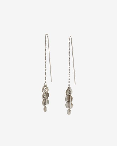 These Metal Shiny Leaf Earrings by Isabel Marant feature delicate, silver-tone stems with elegant leaf-shaped pendants. Inspired by nature, these earrings offer a refined yet playful look, perfect for both casual and formal occasions.