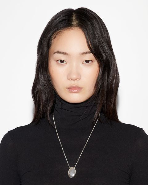 This Perfect Day Necklace by Isabel Marant is a sleek silver-tone chain necklace with a drop-shaped pendant. Its minimalist design offers a modern, understated elegance, perfect for layering or wearing solo.