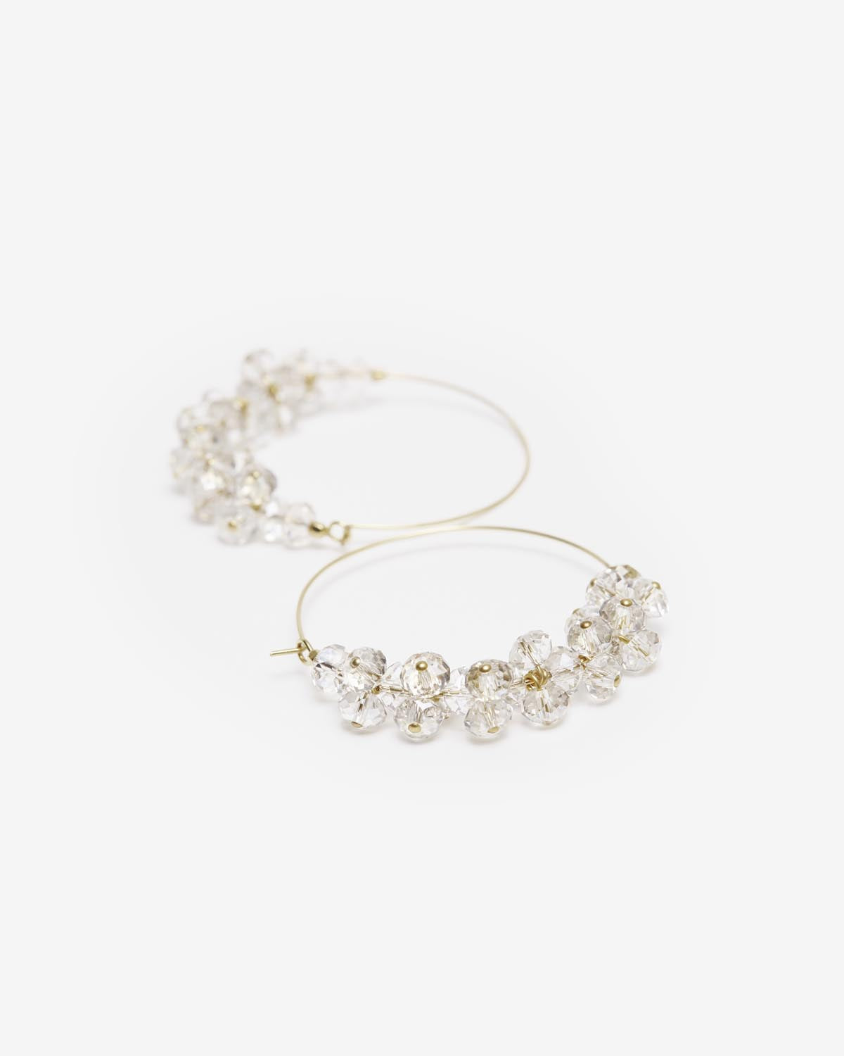 Gold-tone metal with crystal beads, measuring 4.5 cm in length.