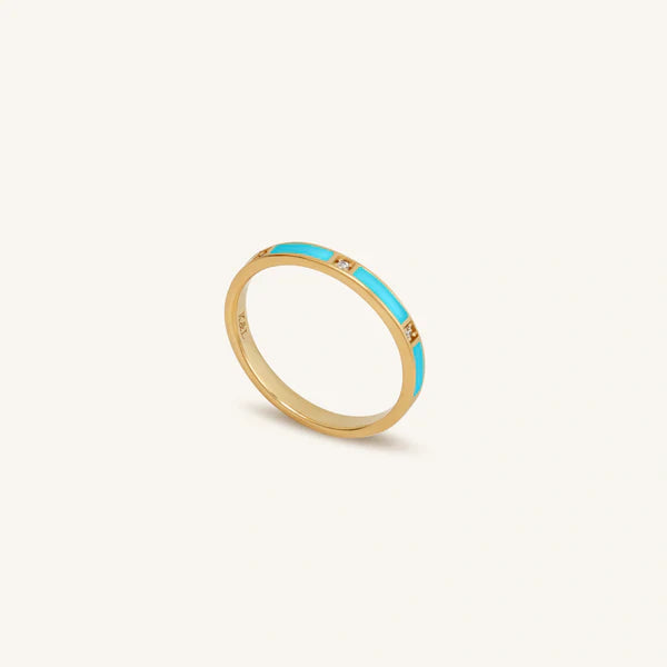 By centering your life around peace, you cultivate the resilience to deal with chaotic times. Hand painted in an ocean-esque hue, this 18K Gold-plated ring offers the tranquil sensation of floating on gentle waves. Embellished with CZ Crystals, your outlook is brightened and your mind is clarified. Wear the “Soothing Vibrations Gold Turquoise Ring” to find serenity no matter the circumstances.