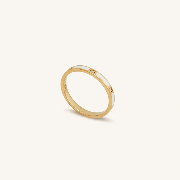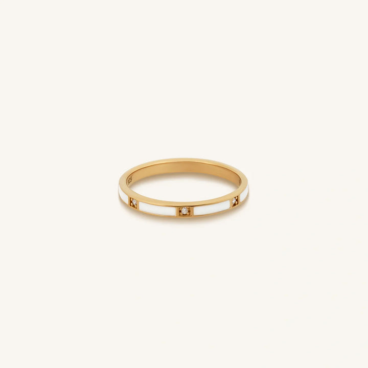 By clearing away lingering energy that does not belong to you, your spirit is refreshed and recharged. Purifying your heart and soul, this 18K Gold-plated ring glimmers with a CZ Crystal. Hand Painted in white enamel, it reminds you that there is always time to start anew. Uncover your purpose and access authenticity while wearing the “Clarified Perception Gold White Ring”.