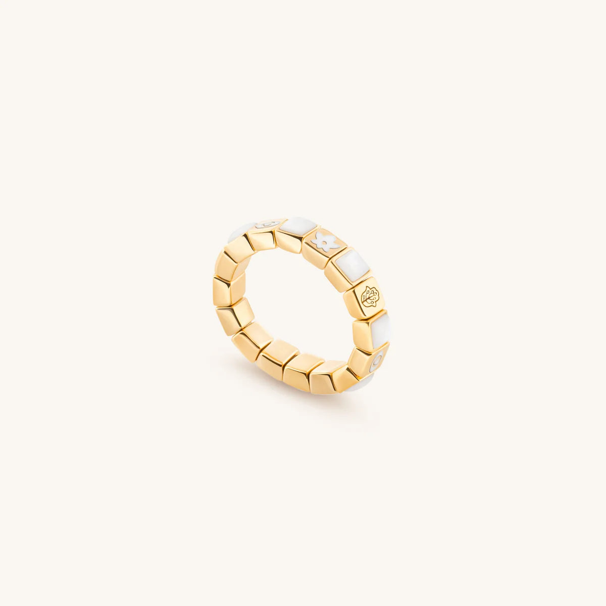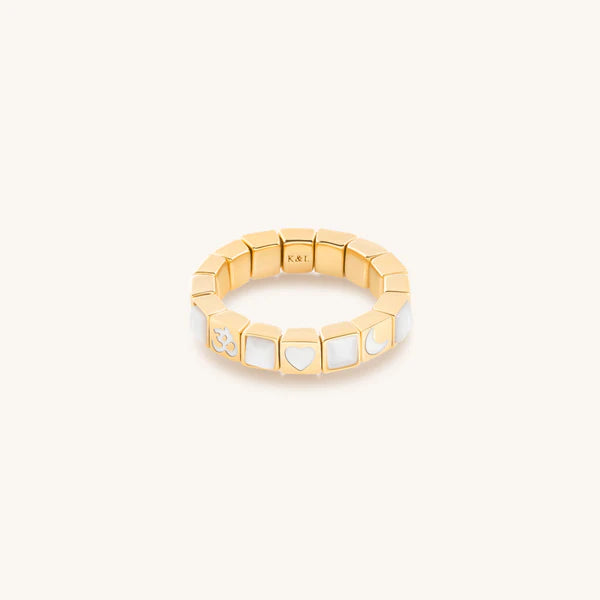 The divine self guides you always, and the luminous light of the soul protects you. Surround yourself with ultimate protection with our "Gentle Spirit - Mother of Pearl Multi Charm Ring." It fuses six almighty symbols that aspires you to be the best version of yourself. To be prepared for what's yet to come, it is always advised to wear statement jewelry to attract powerful spiritual energy. The Mother of Pearl stone has a lovely warm, gentle vibration. It is great in times of tough emotional issues, soothing the nerves and encouraging a calm demeanor.