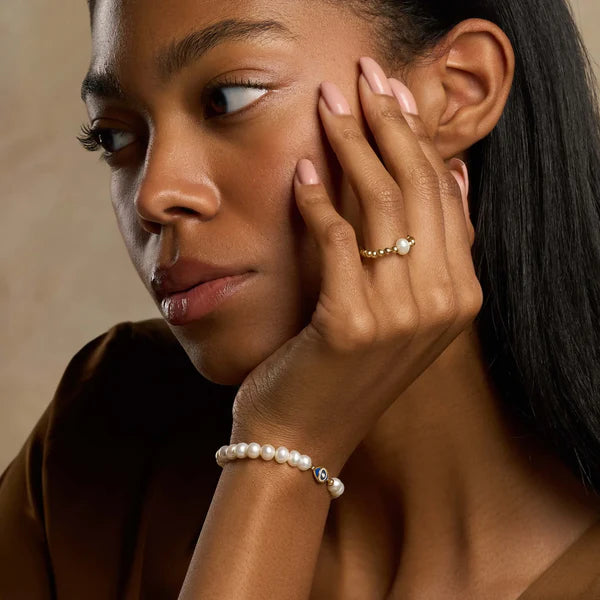 The biggest glow-up is realizing your inner power and utilizing it to become the best version of yourself. Welcome the blessings of the universe into your life with an open heart and remind yourself that transformation is not only possible but necessary with this piece. The “Infinite Blessings Pearl Stretch Ring” gives an effortless style to any look. The transformative energy of the Pearl provides you with a helpful reminder to enjoy the seasons of life. Wear this ring for uplifting energy and soothing vibes.