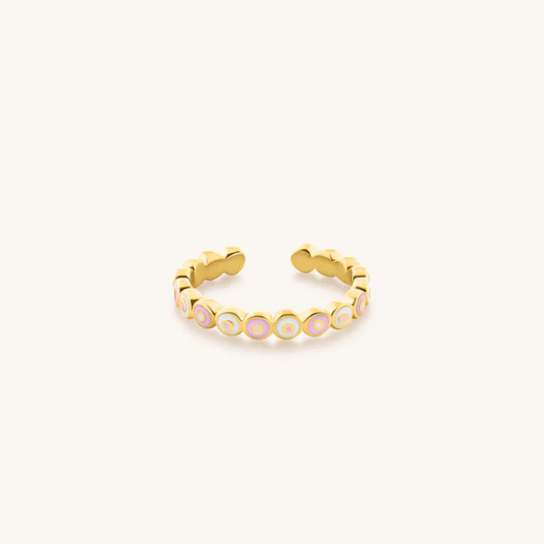 You are mindful in your approach to the world; your vision is grounded in optimism. The "Gentle Expression - Pink Enamel Evil Eye Ring" helps you align yourself with a more positive attitude. Let the ethereal aura of this meaningful jewelry piece subtly guide you through all life obstacles. If you want the light to come into your life, you need to stand where it is shining. The Evil Eye symbol provides you with all the protection your soul needs by fighting all bad vibes like a genuine warrior.