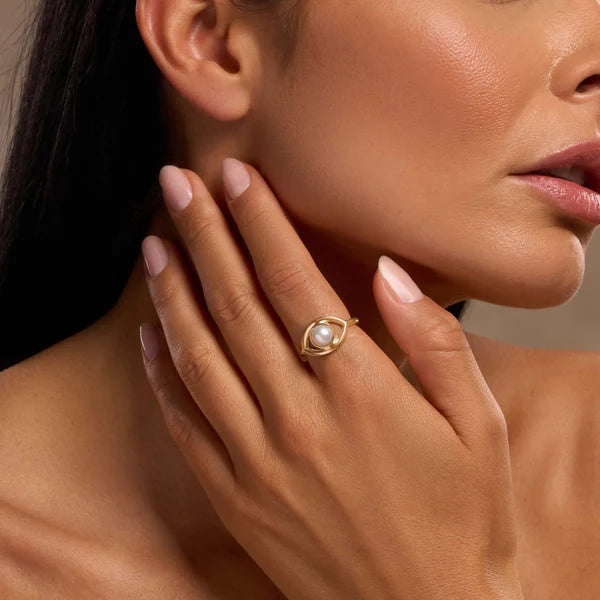 Peaceful Guardian Evil Eye Pearl Ring