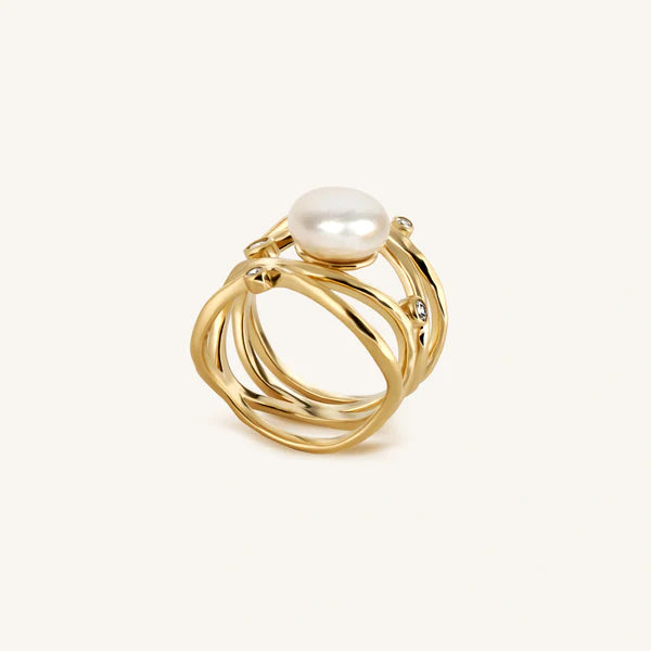 Positive vibrations flow easily when there is less resistance to abundance. Let the good energy flow freely with our handcrafted “Mystic Beauty Pearl Ring”. Set on a stunning design with 18K Gold-Plated Brass lines that elegantly swirl around a 10mm Pearl bead, dotted by 4 Cubic Zirconium pieces. This ring packs a major wow factor while utilizing the uplifting powers of Pearl to offer a new look on life. Wear this ring as a reminder to embrace the ebb and flow of life.