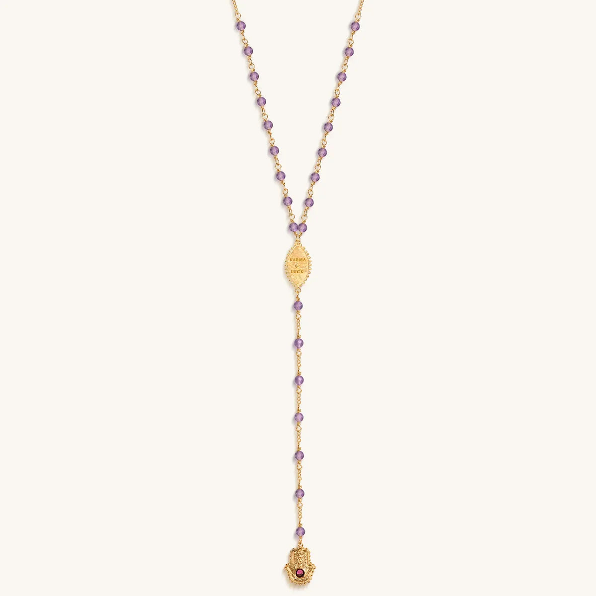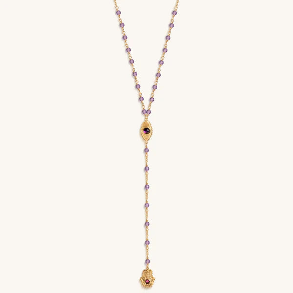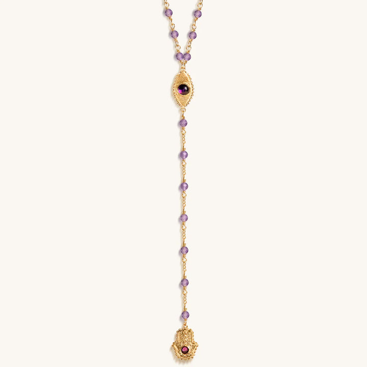 Peace of Spirit - Amethyst Evil Eye Hamsa Lariat Necklace