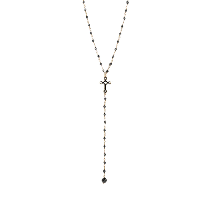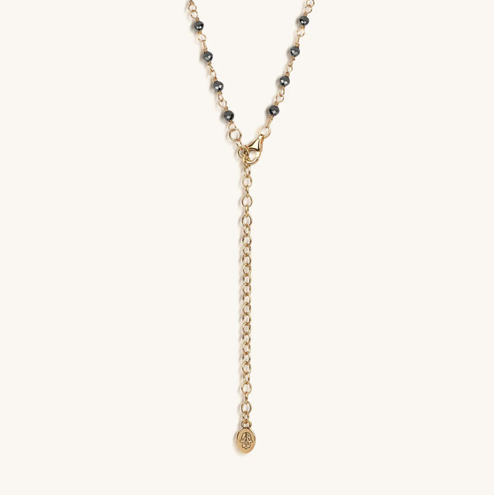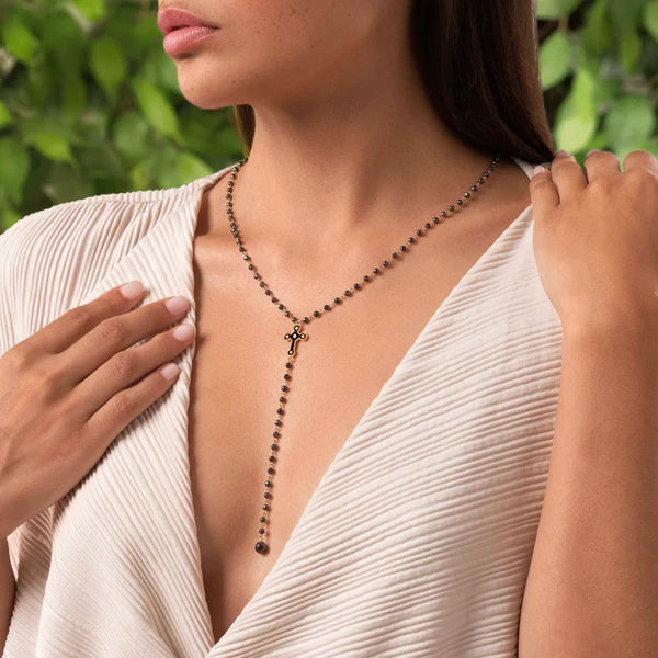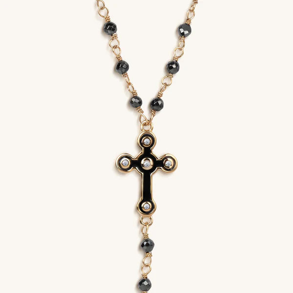 Faith empowers us to walk with steady steps through life's journey. Our artisans crafted this Hematite Rosary Necklace to strengthen the resilience that comes from faith. Each bead embodies stability, grounding you in the present. The Black Enamel and Diamond stand as a testament to the power of faith, even in the face of adversity. Let this necklace remind you to stay anchored in your beliefs.