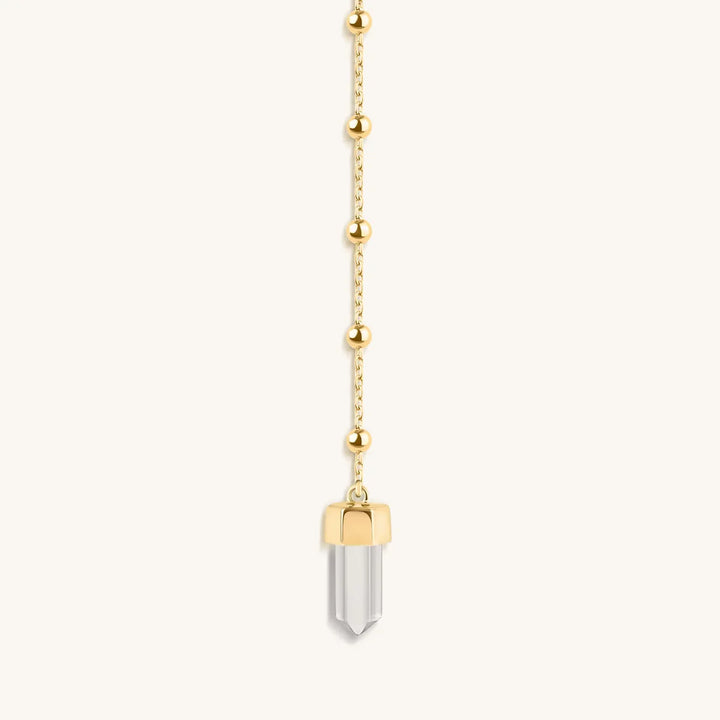 The first step towards freedom is cleansing your spirit of any energy that is not yours to carry. Sitting on a gleaming chain, our artisans infused this necklace with the protective powers of the white enamel Evil Eye and the purifying benefits of Crystal Quartz. Sparkling with the addition of a CZ Crystal, this necklace matches the beauty of your heart. Wear to find clarity in the path to your dreams and goals.