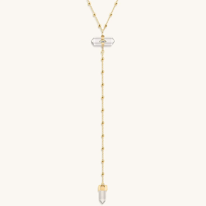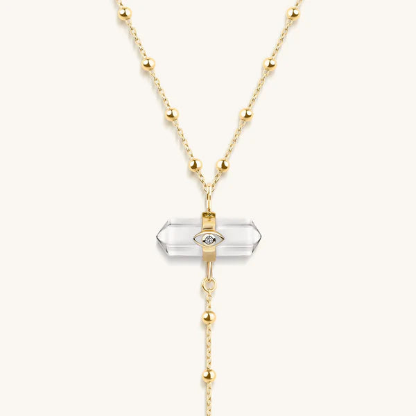 Clear Mind - Crystal Quartz Gold Evil Eye Necklace