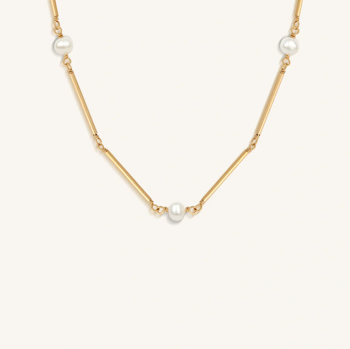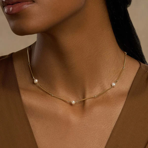 Love, joy, and happiness help us vibrate at the highest frequencies, showing us the best version of ourselves. Let your inner beauty shine through with this stunning necklace. The handcrafted details of our “Highest Vibrations Pearl Necklace” will add the perfect pop of style to your collection. The 18K Gold-Plated Brass is dotted with 5mm Pearls, which add their transformative properties to help you become your best self. Wear this necklace to elevate your vibrations.