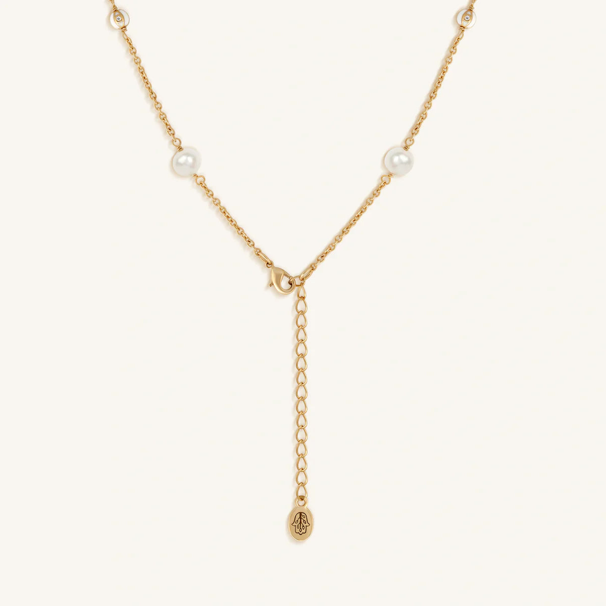 Sometimes you need an added push to get through a challenge, but the courage and power you need are already inside you. Tap into your inner strength and realize how powerful believing in yourself can be. This “Spiritual Masterpiece Evil Eye Pearl Necklace” serves as an elegant reminder of how impressive you are. The 18K Gold-Plated Brass of this necklace is decorated with 4mm Pearls that add uplifting energy. Wear this necklace to embrace your resilience and brilliance.