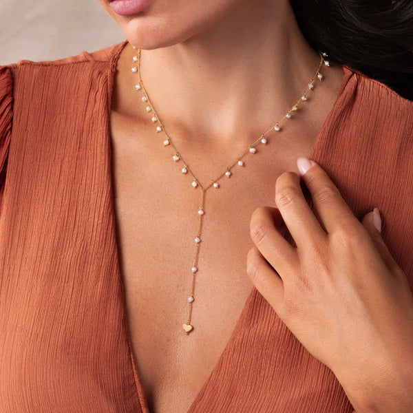 Timeless Love Heart Pearl Lariat Necklace