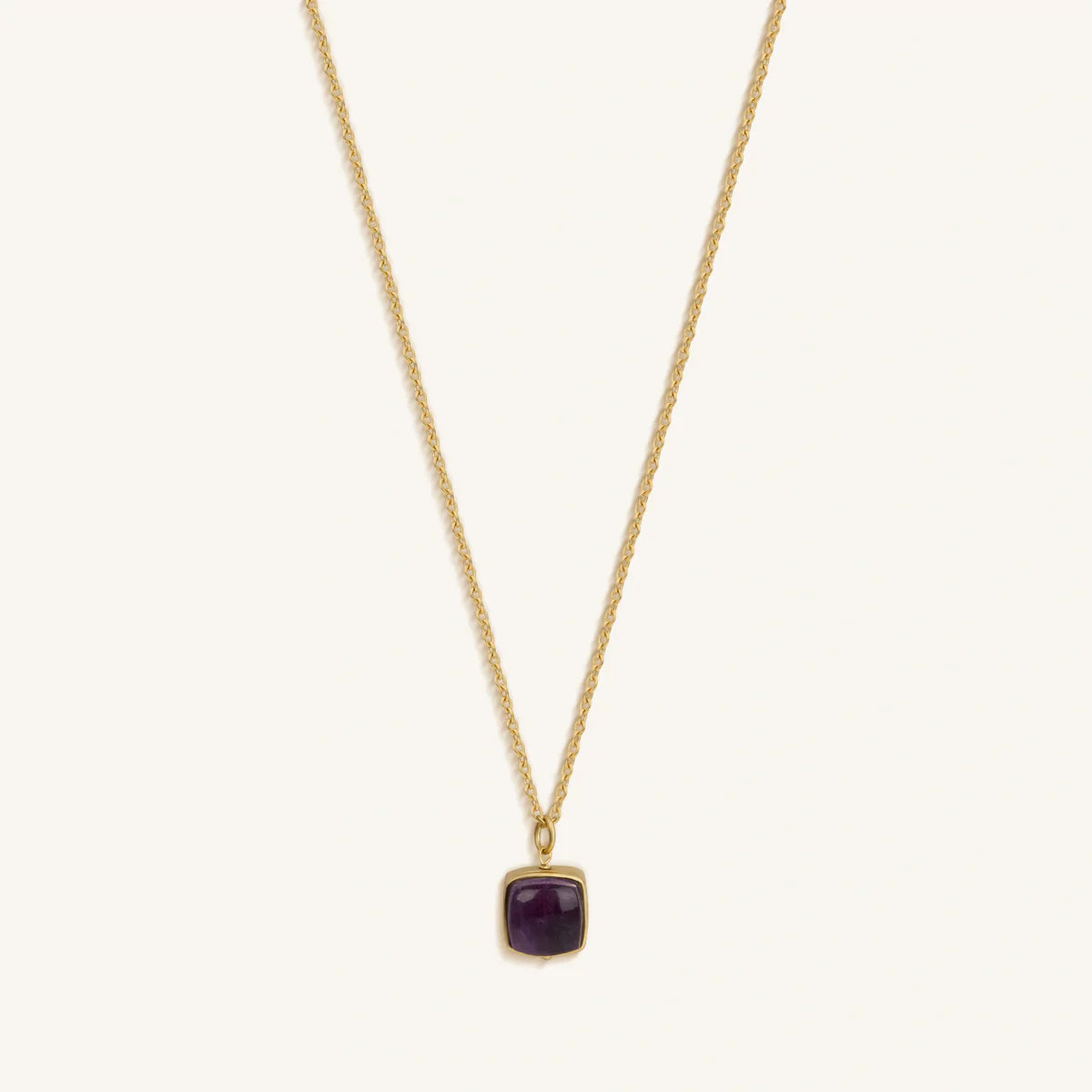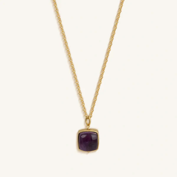 The calming energy of Amethyst is a soothing antidote to stress and feeling overwhelmed. The 8mm stone affixed to the “Soulful Clarity Amethyst Necklace” gives you a serene effect while stimulating your crown chakra. Sitting on an 18K Gold-Plated Brass chain, this Amethyst necklace has Gold finishes for an eye-catching addition to any outfit. Connect with your higher consciousness and protect your intuitive powers with this lovely necklace.