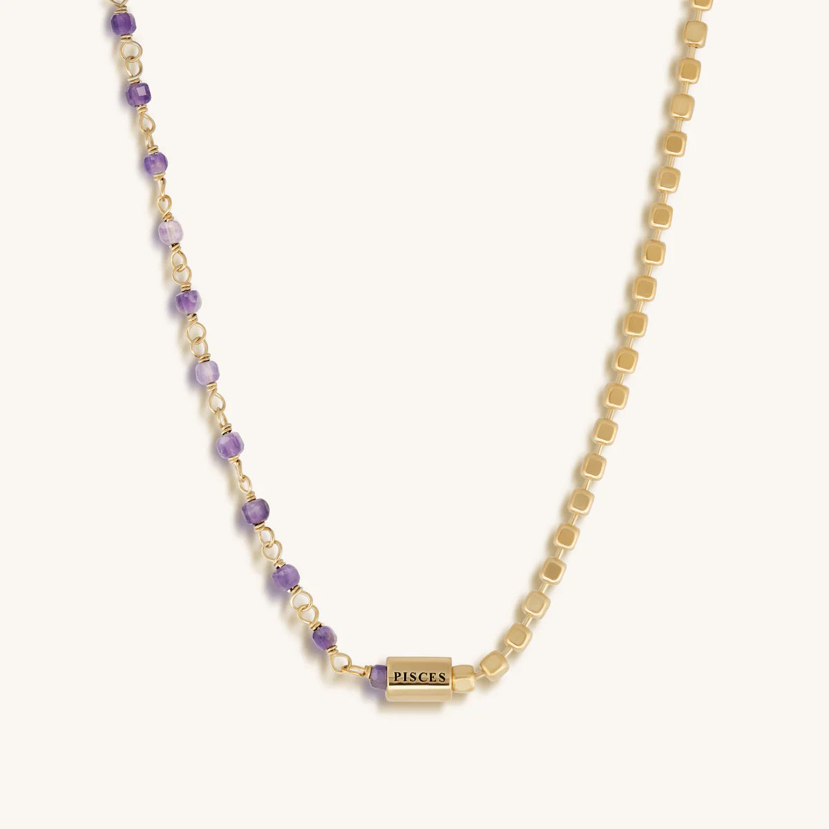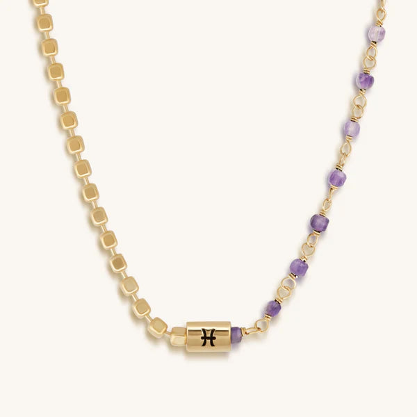 Equal parts dreamer and empathic, the joyful Pisces sign enjoys creating art and beauty all around them. To show these hard-working fish signs of our appreciation, we have handcrafted this stunning “Creative Empath Pisces Amethyst Necklace”. The glistening gems of Amethyst pop with the background of 18K Gold-Plated High Polished Silver and the added Pisces symbol bead make this a truly special piece. While Pisces season covers two birthstones, we picked one for each Zodiac necklace.