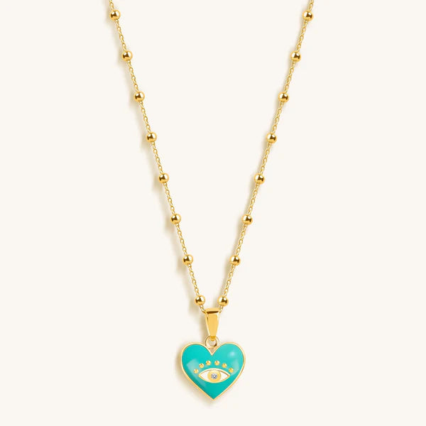Sincere Love - Evil Eye Diamond Heart Charm Necklace