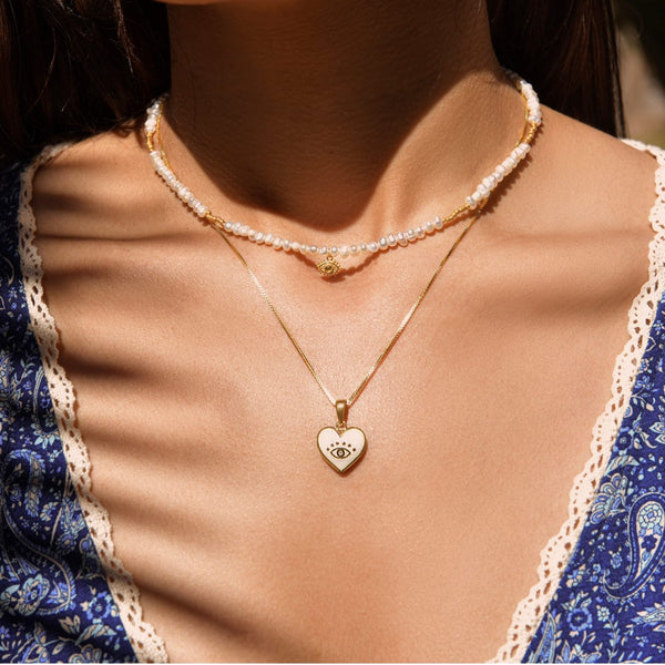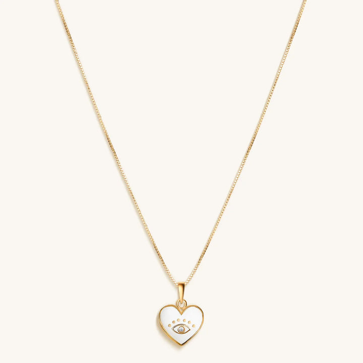 Lovely Light - Evil Eye & Diamond White Enamel Heart Necklace