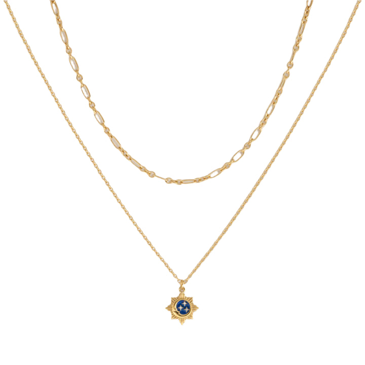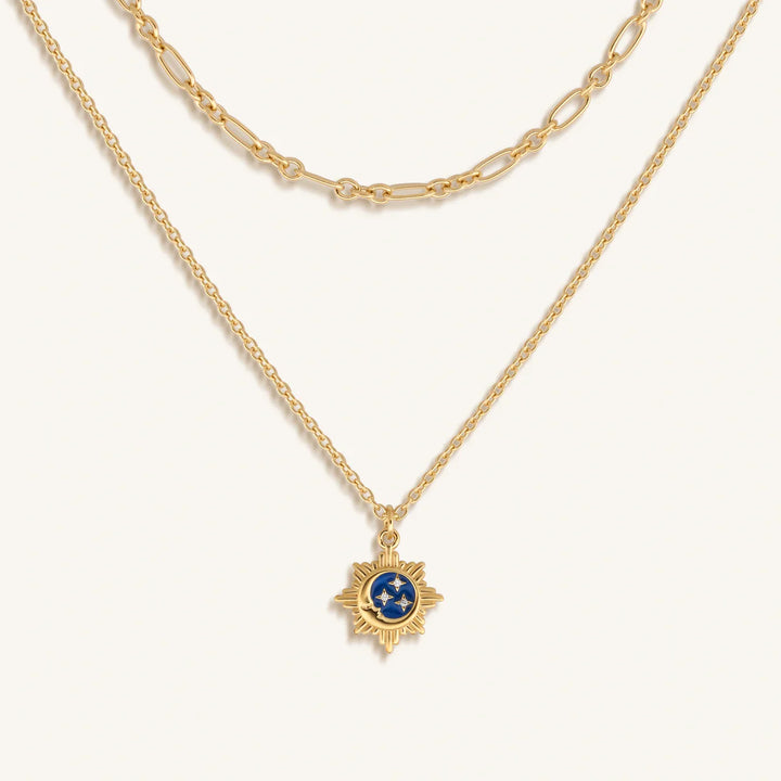 Reflected Bliss Gold Moon & Stars Double Chain Gold Necklace