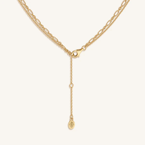By prioritizing moments of quiet introspection, you discover the true desires of your heart. Inviting cosmic energy to illuminate your purpose, this 18K Gold Plated Necklace features a Moon and Stars charm. Symbolizing divine guidance, the Moon and Stars keep your path clear, bright, and free of obstacles. Wear the “Reflected Bliss Gold Moon & Stars Double Chain Gold Necklace” to boost your manifestations.