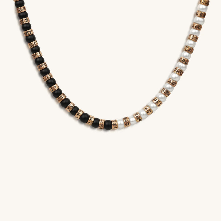 Karmic Grace Pearl Onyx Mantra Necklace