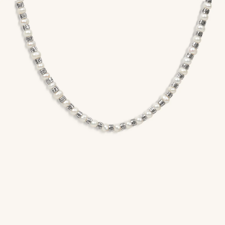 The purifying effects of being in love will elevate your soul and help you lead with your heart. When you harness the power of love, you will be unstoppable in the pursuit of your dreams. Our handcrafted "Pure Love Pearl Mantra Necklace" will add soothing energy to your daily routine. Pearl is essential for attracting ever-lasting love while keeping your spiritual energy balanced with the help of mantra barrels. Wear this necklace for added kindness and patience.