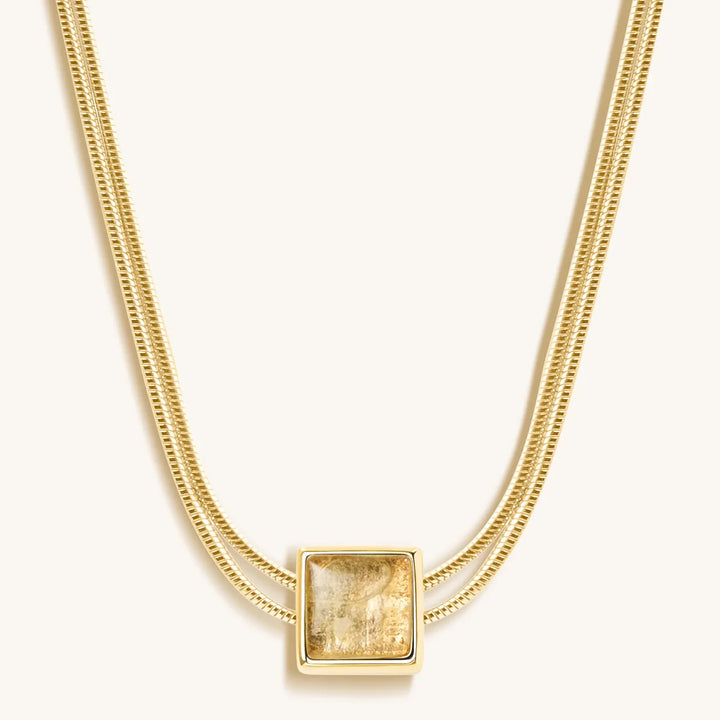 4.5 x 4.5 mm Clear Quartz Stone: clarity, divine connection, concentration, stone amplifier.6 mm Evil Eye Charm: deflect negativity18K Gold Plated - 925 Sterling Silver BrassDouble Chain NecklaceSize: Adjustable from 15' to 18'Culture: Handmade in Bangkok, Thailand.
