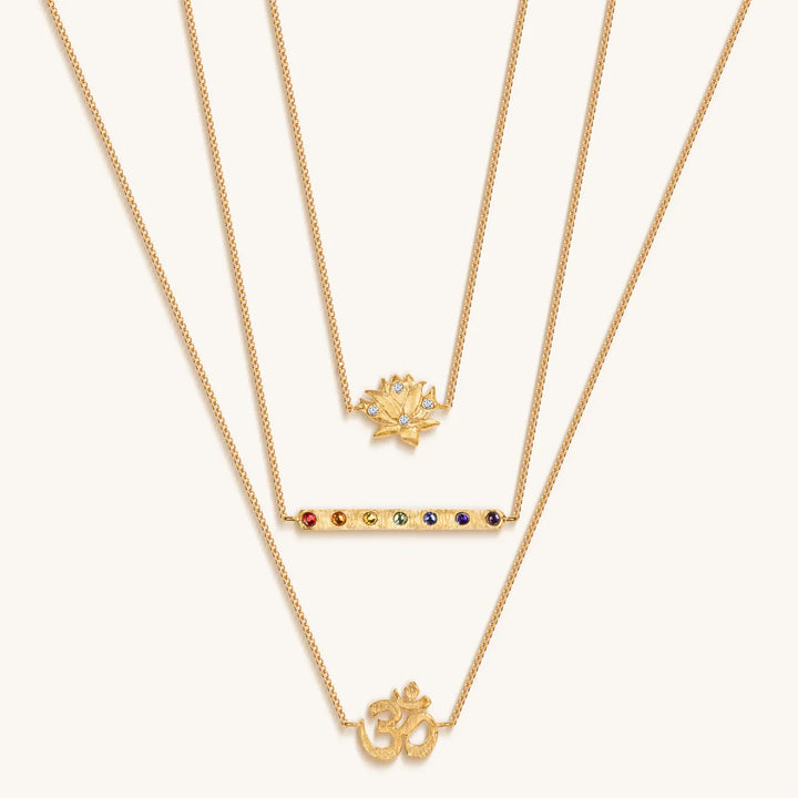 Aligned in Serenity - Lotus OM Chakra Bar Triple Layer Necklace