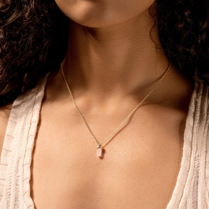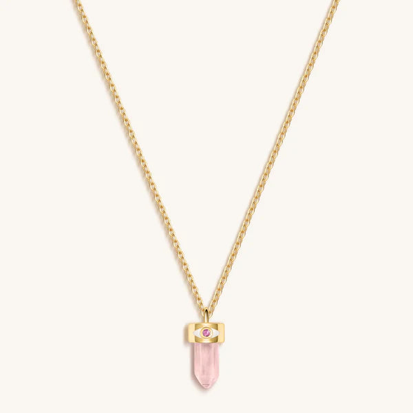 Love creates miracles, heals all wounds, and purifies all lower energies. The 'Delicate Guidance - Rose Quartz Evil Eye Pointer Necklace' soothes negative emotions like anger and disappointment by bringing love into newly harmonized emotions. Although Rose Quartz is deemed to be the most romantic gemstone of them all, it is also very protective, almost like a mother among the gemstones. Packed with the mighty Evil Eye, this duo's force is unattainable.