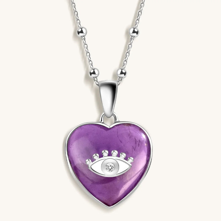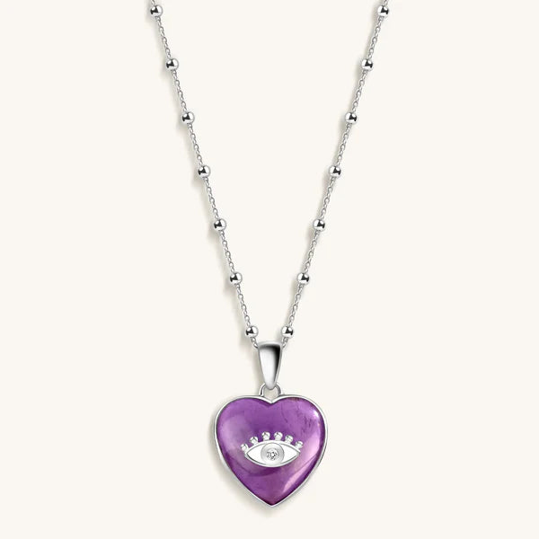 Soothing Love - Amethyst Heart Diamond Evil Eye Necklace