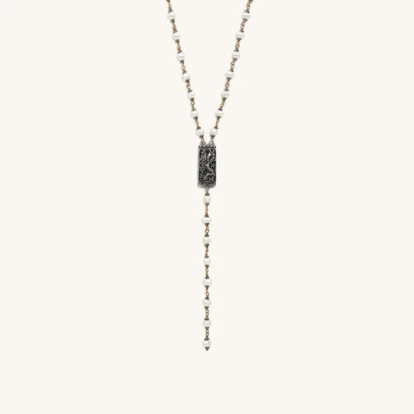 Seeking solace during challenging times will give you a breath of reprieve. Our handcrafted “Spiritual Renewal Pearl Rosary Necklace” helps block negative energy and enhance your confidence. Paired with pearl, the stone of inner wisdom, this necklace ensures every move you make brings you closer to peace. Along with protection and good luck, you will experience immense inner peace to keep you calm and balanced wearing this necklace.
