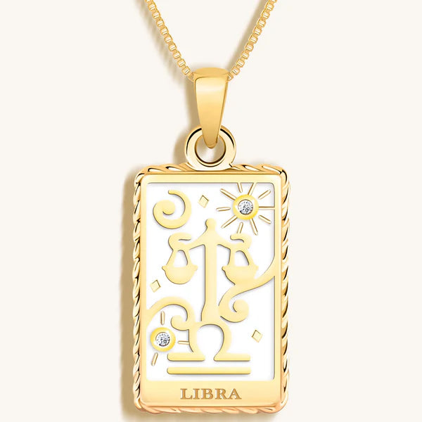 Libra Healing Mantra- 'I am aligned with my highest self and I achieve my goals with ease'Libras are among the most fascinating and intelligent individuals on the planet, and they have a lot to give. Scales that symbolize the sign, are often concerned with attaining balance, harmony, peace, and justice in the world. With their vast stores of charm, intelligence, frankness, persuasion, and seamless connectivity, they are well-equipped to do so. The 'Charming Grace - White Enamel Libra Card Necklace' is here to bring all Libras a touch of independence, stepping aside from the constant seeking for justice and equality. The balance will be restored in all areas of life, you just have to be patient. Sign: LibraElement: AirRuler: VenusStrengths: Cooperative, diplomatic, gracious, fair-minded, social
