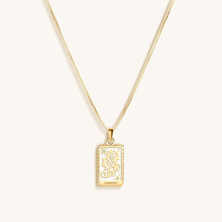 Gemini Healing Mantra - 'Positive energy flows to me and flows from me'A bright mind, a bright outlook on life, and cheerful affection are the go-to traits of an ever-changing Gemini. You are mindful of your approach to the world; you are a visionary grounded in positivity. The 'Playful Mind - White Enamel Gemini Card Necklace' showcases that you are always ready for an adventure or intellectual conversation. You are ruled by the planet Mercury, which makes you fast, humorous and efficient while communicating with others.Sign: GeminiElement: AirRuler: Mercury - Movement, ConceptsStrengths: Dualistic, Versatile, Curious and Optimistic