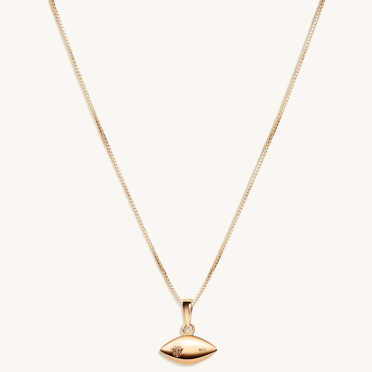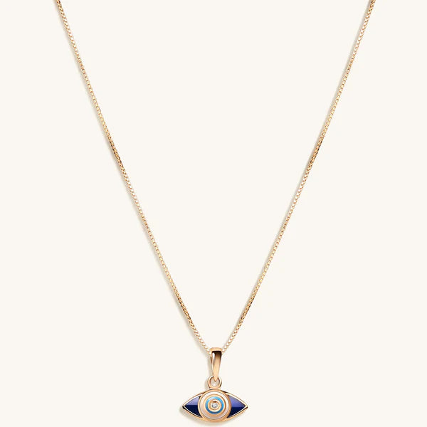 Evil Eye Pendant: deflect negativityDiamond ChipBlue and White Enamel18K Gold Plated - 925 Sterling SilverLength: 18'