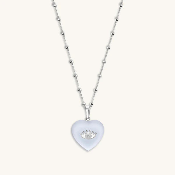 Deepest Love - Blue Chalcedony Evil Eye Heart Necklace