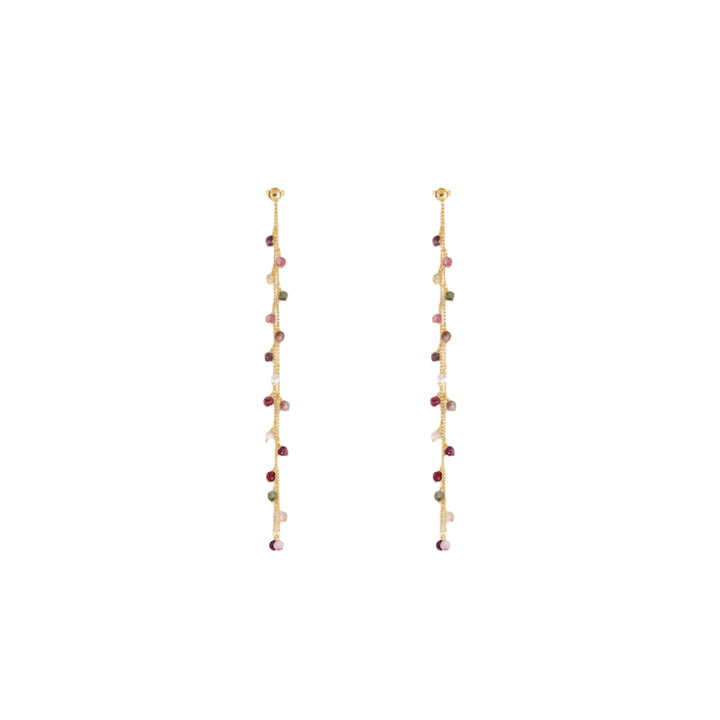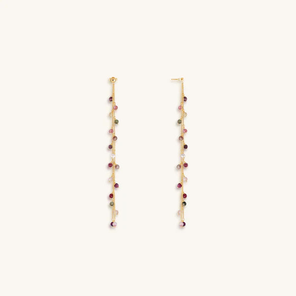 3 mm Tourmaline Beads: Peace, Balance, Healing18K Gold Plated BrassSize: 4'Double Strand Duster EarringsHandmade in Bali, Indonesia