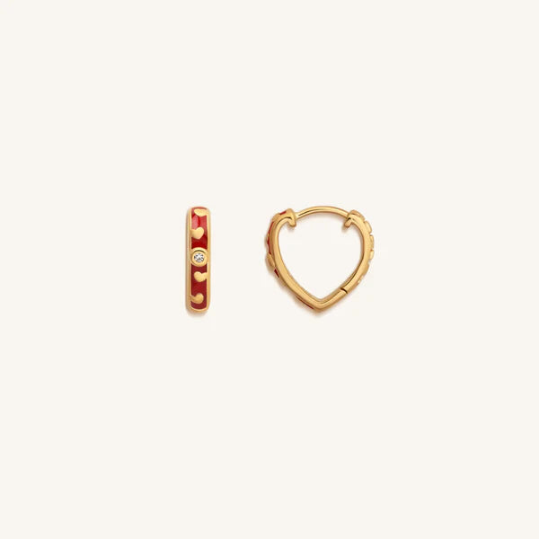 By keeping yourself open to love, your whole world expands. Skillfully crafted by our artisans, these red enamel earrings are designed with hearts and a CZ Crystal to shower yourself or a loved one in pure affection. Plated in 18K Gold, the “Limitless Love Gold Heart Hoop Earrings” radiate with compassion and care. Wear to encourage a flow of bright, positive energy.