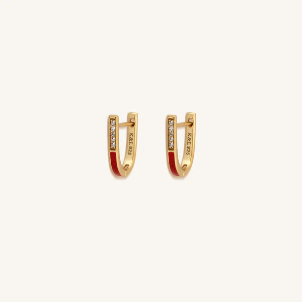 By following your bliss, your purpose is revealed. Designed to inspire authenticity, the “Empowered Passions Red Gold Hoop Earrings” are hand-painted with red enamel, plated in 18K Gold, and embellished with CZ Crystals. Encouraging boldness and bravery, these beautiful earrings invite you to step into your power and discover your highest potential. Wear to become the truest version of you.