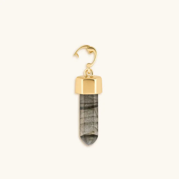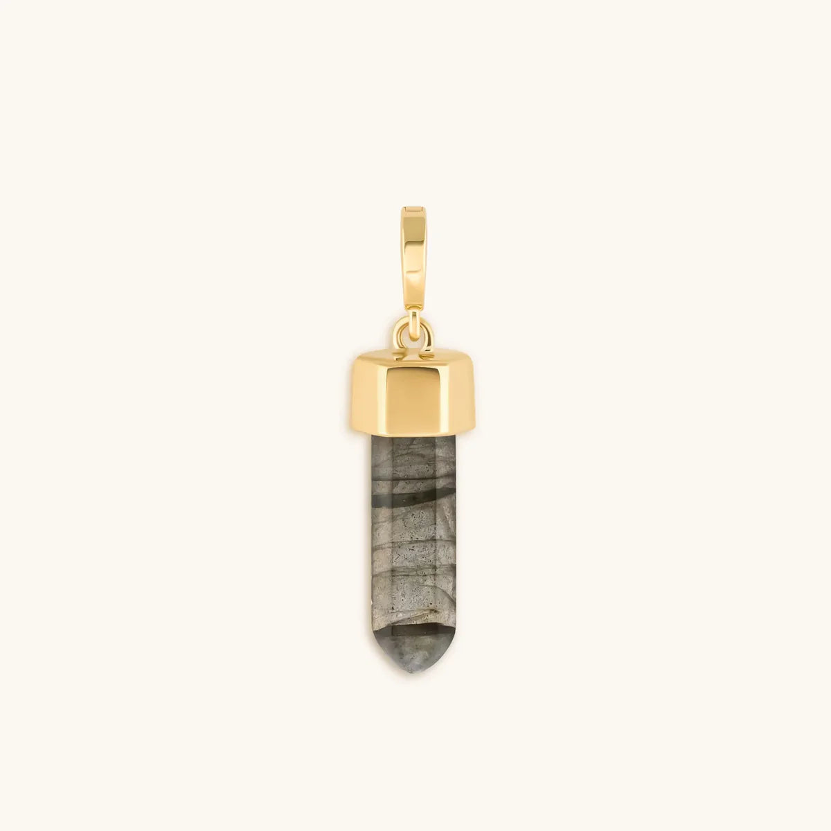 We created our handcrafted, hand-cut crystal pointer charms to guide you to the good things in life. This charm is crafted of pure, iridescent Labradorite, an intuition-boosting crystal that helps you discover and embrace your true self. Simply add it to your favorite charm bracelet or necklace to infuse your life with the benefits of this healing crystal.