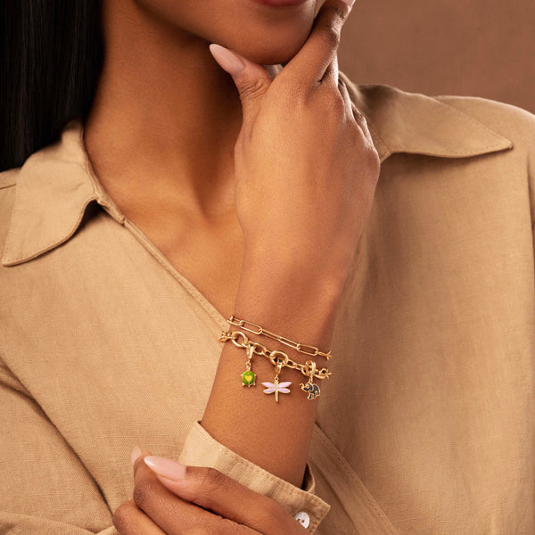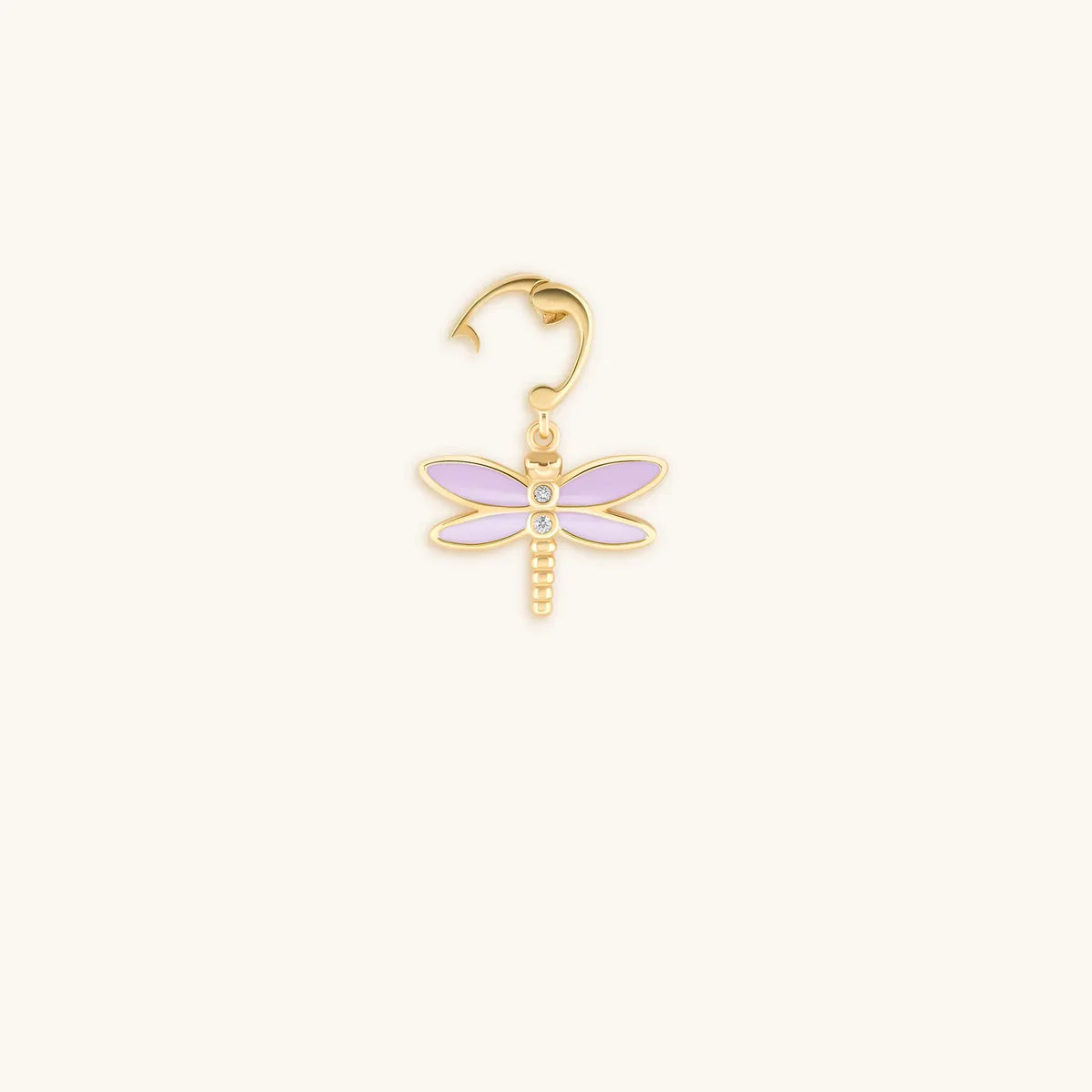 Pendant Size Including Bale 18.7 x 16 mm: Dragonfly Charm 10.7 x 16 mmTransformation, Connection, WisdomLilac Enamel1.25 mm CZ Crystal18K Gold Plated BrassHinge ClaspHandmade in Bangkok, Thailand