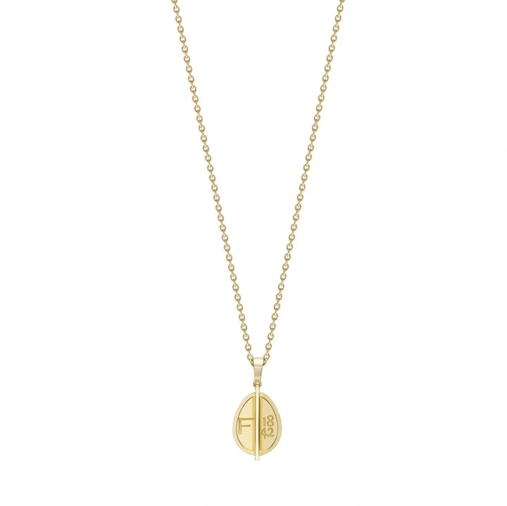 This 1842 Yellow Gold Petite Egg Pendant by Fabergé is an elegant tribute to the heritage of the iconic house. Set in polished 18-karat yellow gold, this petite egg-shaped pendant is a delicate homage to Gustav Fabergé’s original designs from 1842. The chain measures 50cm in length, while the egg measures 14.8mm in height, 9.8mm in width, and 2.5mm in depth. True to Fabergé’s penchant for surprise, a hidden Gemfields Mozambican ruby is nestled inside, adding a secret touch of passion, prosperity, and protection to this refined piece.