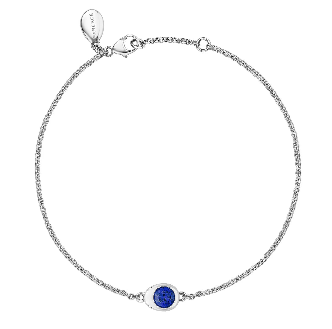 The Colours of Love Cosmic Curve White Gold & Blue Sapphire Chain Bracelet features a round blue sapphire, set in 18 karat white gold. Blue sapphire, symbolizing wisdom, virtue, and good fortune, is the centerpiece of this bracelet. As with all pieces in the Cosmic Curve collection, it includes a hidden Gemfields Mozambican ruby, adding an element of surprise. The bracelet celebrates the eternal bonds between family, friends, and partners.