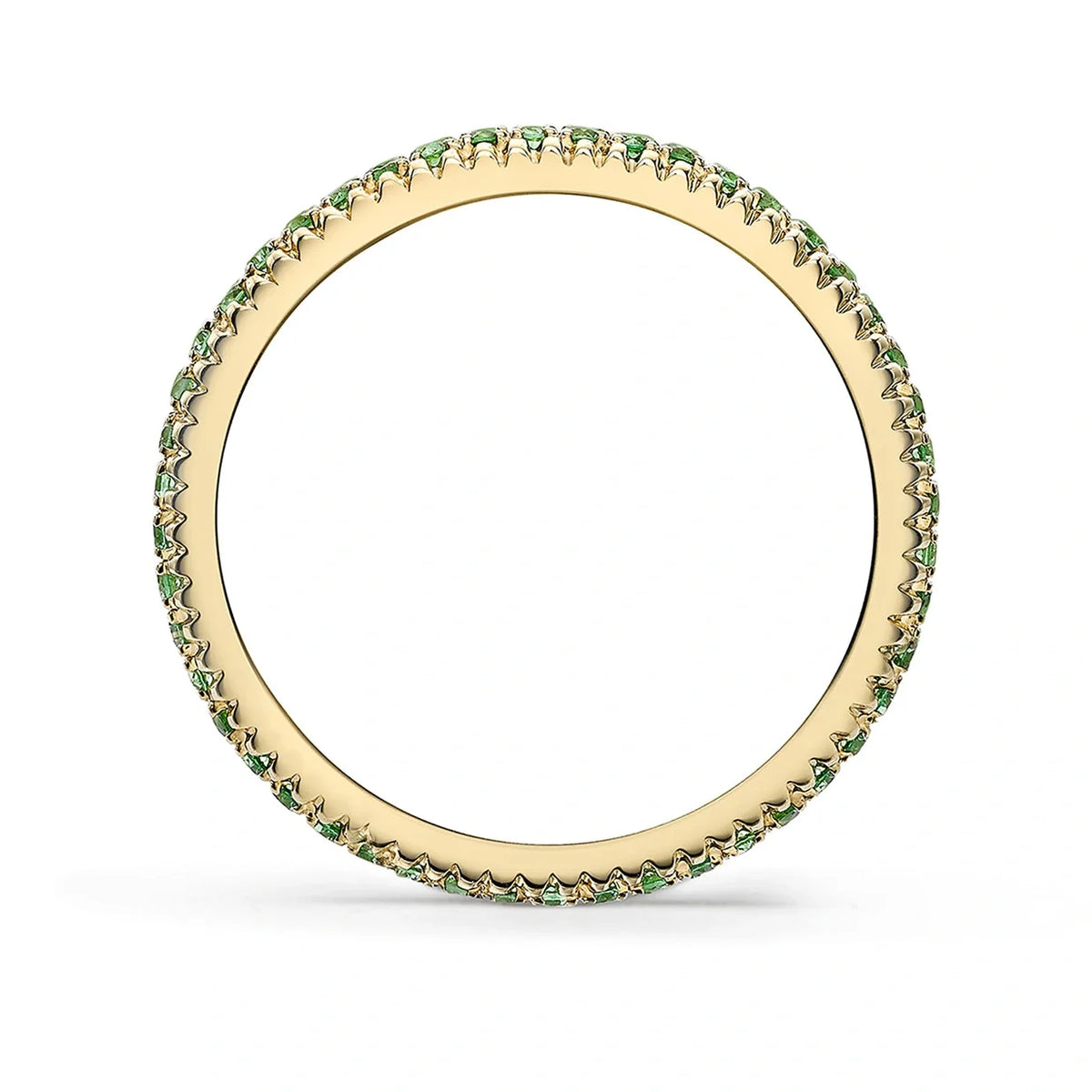 Handcrafted in 18-karat yellow gold with round tsavorites set along the band. A hidden ruby is concealed inside the band. The band measures 2.7mm in width and 1.9mm in depth.