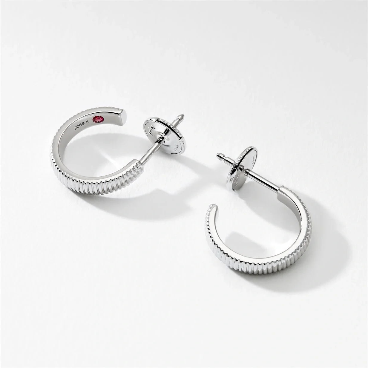 These Colours of Love White Gold Fluted Hoop Earrings by Fabergé combine the timeless appeal of 18-karat white gold with the stunning vibrancy of Mozambican rubies. Concealed within the hoop, the rubies are a hidden surprise, in keeping with Fabergé’s penchant for playful luxury. Measuring 15mm in diameter, these earrings provide an elegant and versatile option for those seeking a sophisticated yet striking design. The Colours of Love collection celebrates bold color and exceptional craftsmanship, with a commitment to ethical sourcing and environmental stewardship through Gemfields.