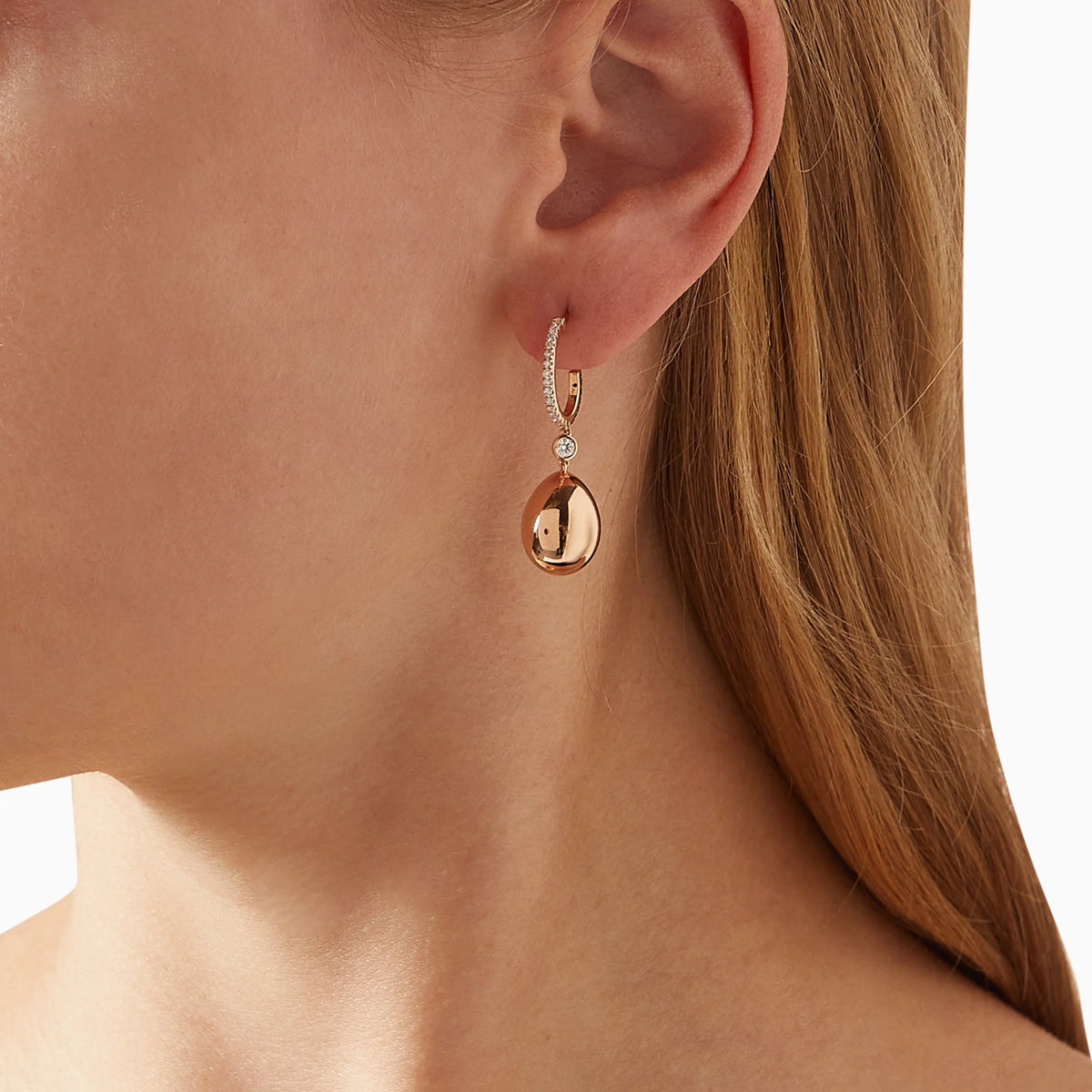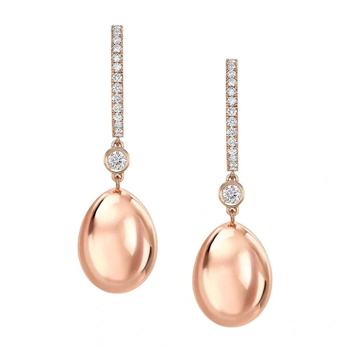 Handcrafted in 18-karat rose gold with round white diamonds. The eggs measure 14mm in size.