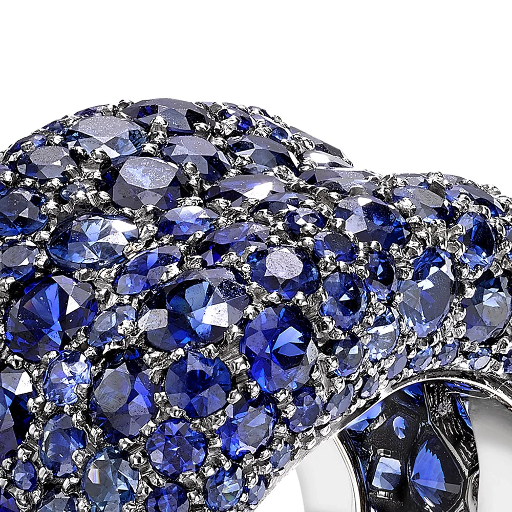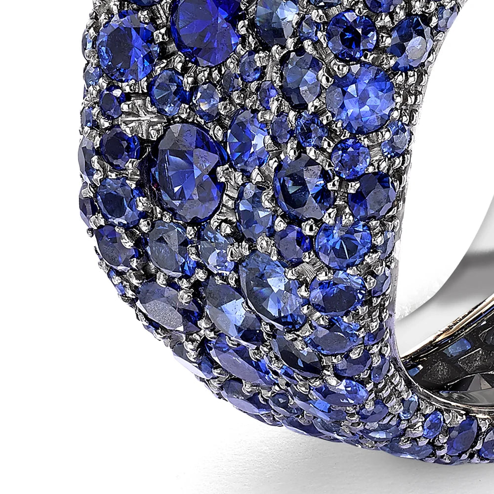 Handcrafted in 18-karat white gold, featuring numerous round blue sapphires.