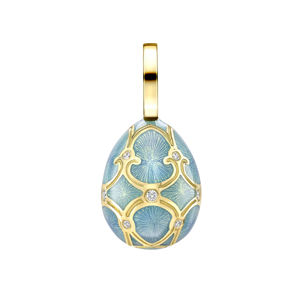 This Heritage Yellow Gold Diamond & Turquoise Guilloché Enamel Egg Charm by Fabergé is a vibrant celebration of color and craftsmanship. The charm features round white diamonds and turquoise guilloché enamel, set in 18-karat yellow gold, creating a timeless and sophisticated piece. Inspired by Fabergé’s historical masterpieces, this charm combines traditional techniques such as the delicate art of guilloché enameling with modern design sensibilities. A perfect addition to any collection, this charm captures the opulence and intricate craftsmanship of Fabergé’s legacy.