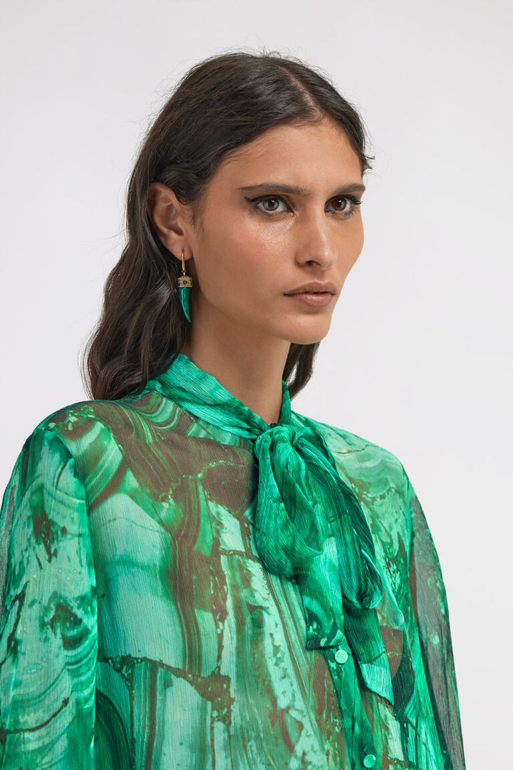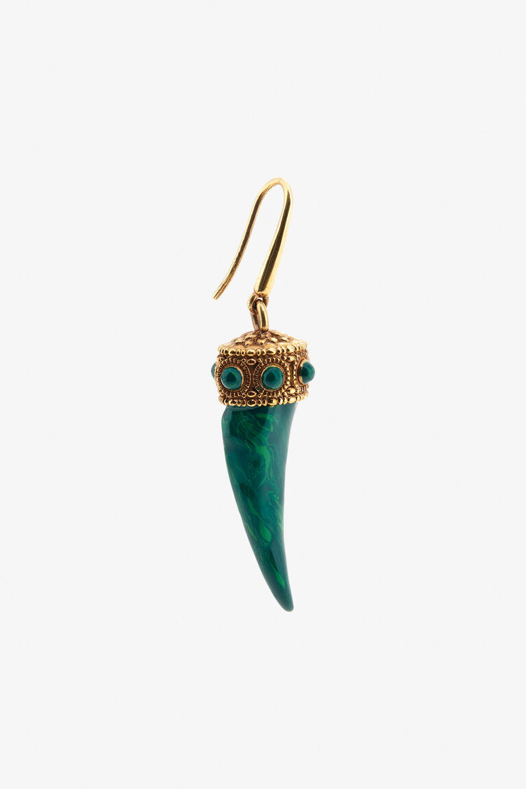 These Malachite Enamel Fang Earrings by Roberto Cavalli feature a bold horn motif in grass green and gold tones, evoking a striking, modern aesthetic. With their sleek drop design and distinctive color palette, these earrings make an impactful accessory for those who appreciate contemporary statement pieces. Perfect for both casual and elevated looks, they reflect Cavalli's signature flair for luxurious detail and unique design.