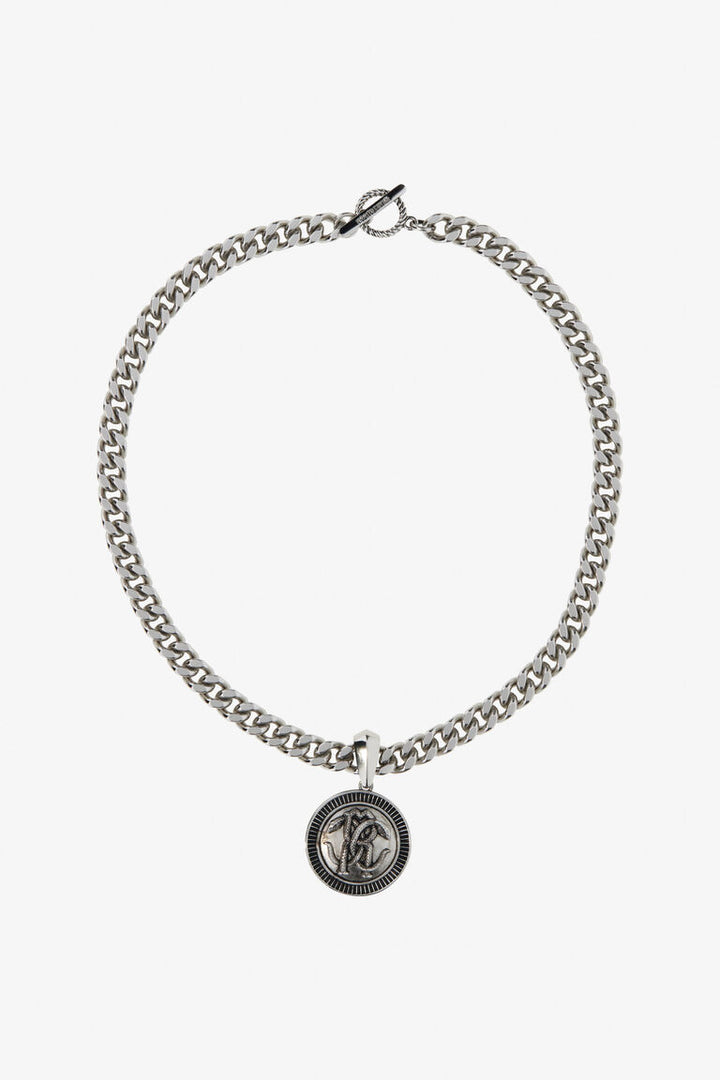 This RC Logo Necklace by Roberto Cavalli embodies the brand's signature elegance, featuring the iconic RC logo as a central pendant. The sleek design and polished finish make it a versatile accessory, suitable for both casual and formal occasions. Ideal for those who appreciate luxury with a subtle statement, this necklace adds a touch of sophistication to any ensemble.